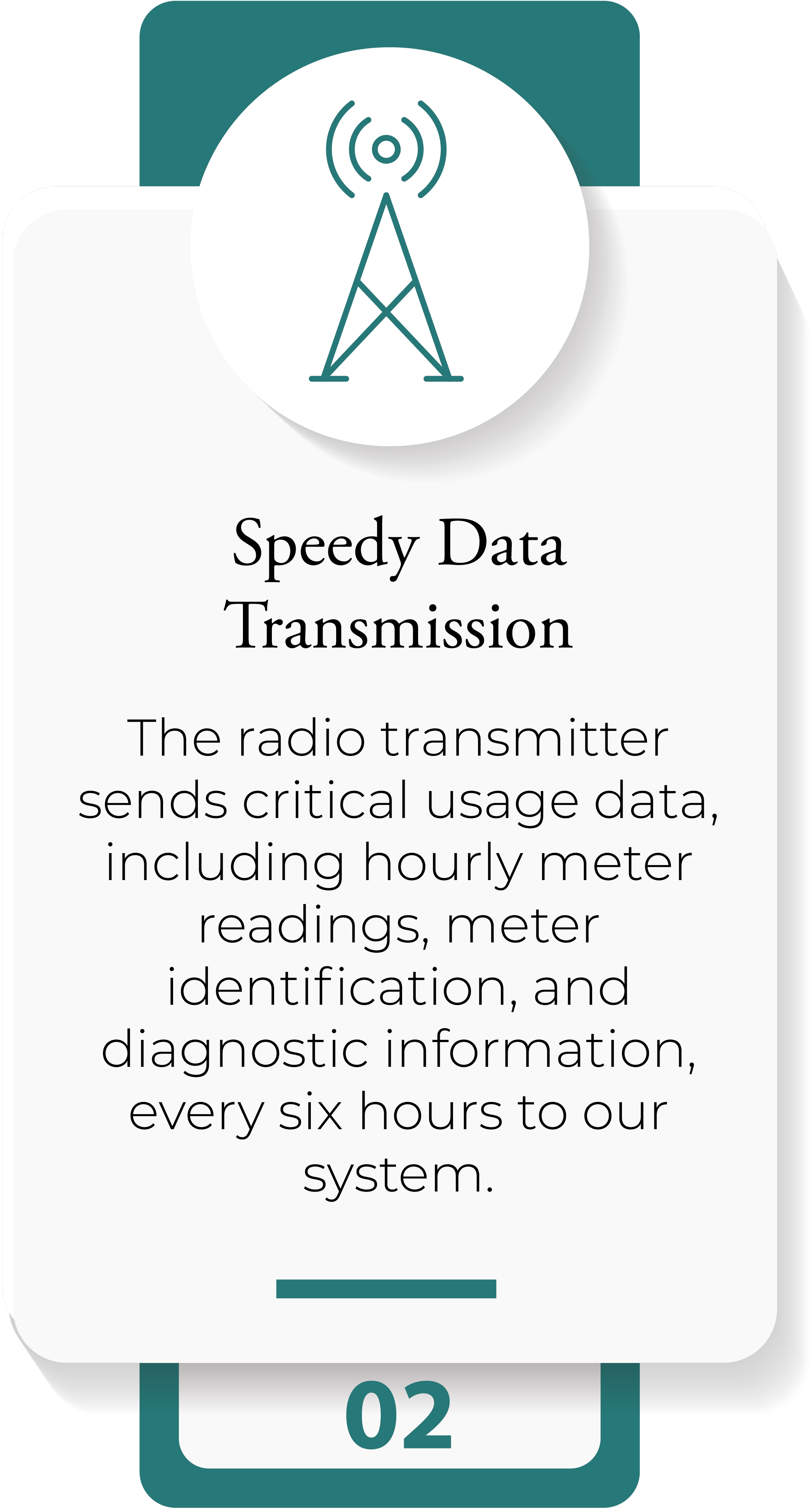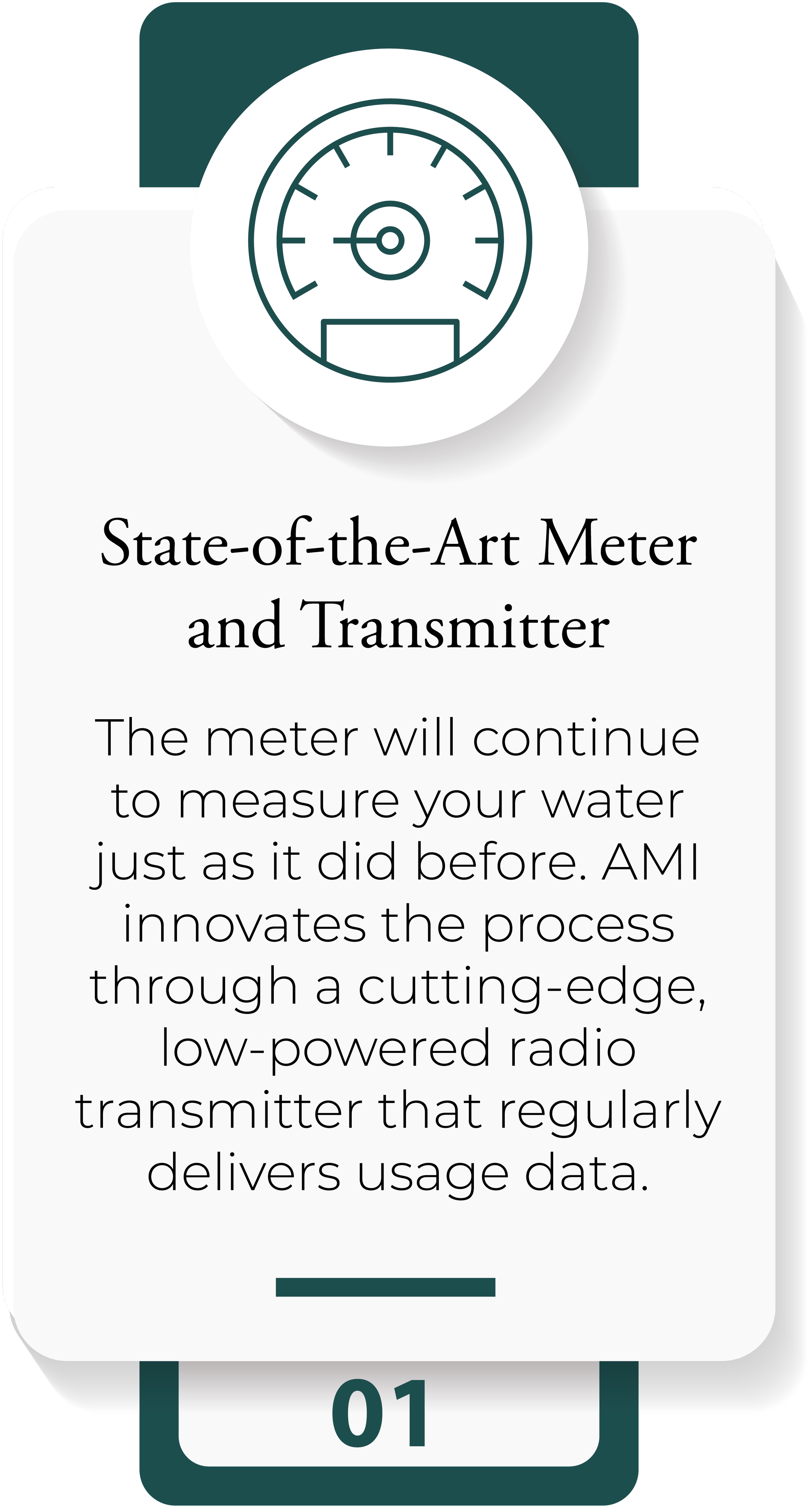 AMI connects standard water meters to low-powered radio transmitters that regularly transmit usage data to our secure, encrypted system. In turn, you can use our convenient customer portal to view hourly data about your water usage.